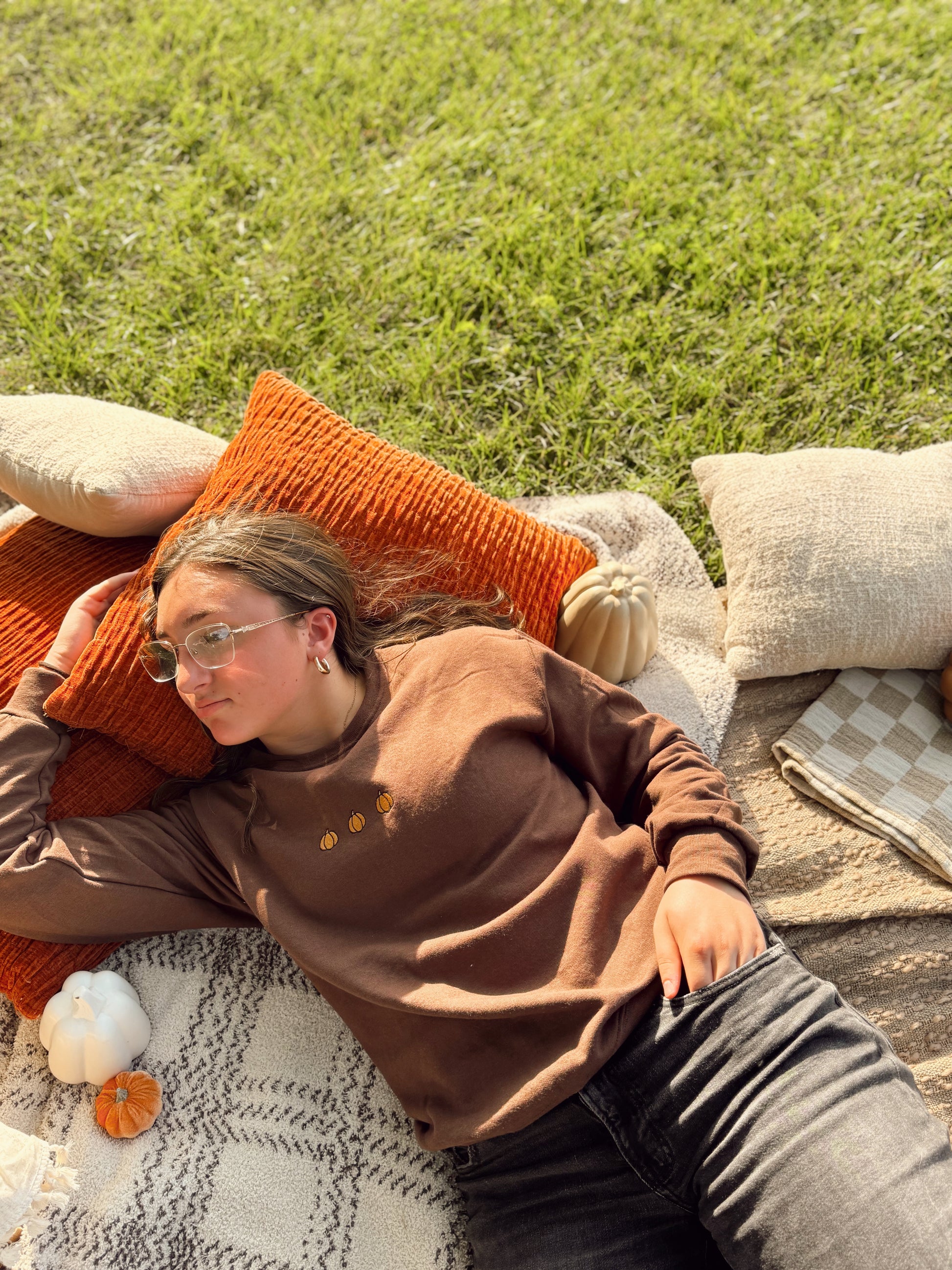 Embrace the cozy vibes of the season with our Harvest Pumpkin Sweatshirt. This crewneck is crafted from a soft, chocolate-brown heavy-blend fabric, making it the perfect companion for crisp autumn days and bonfires. The delicate, tonal pumpkin embroidery on the chest provides a subtle nod to the season, while the classic fit ensures effortless comfort and style.