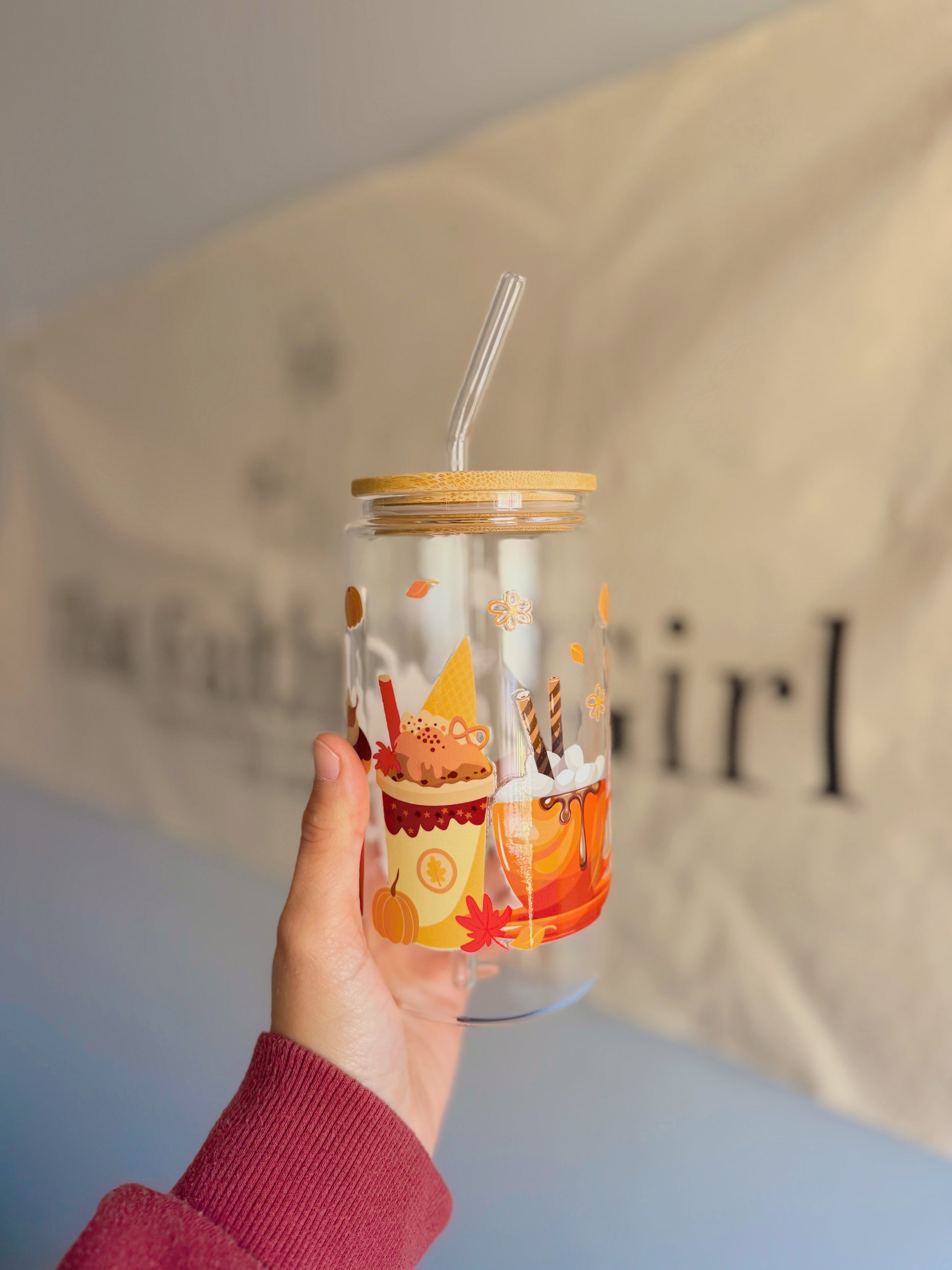 Pumpkins, ghosts, and cozy sips, our fall glass 16oz tumblrs are here for all your PSL vibes !!