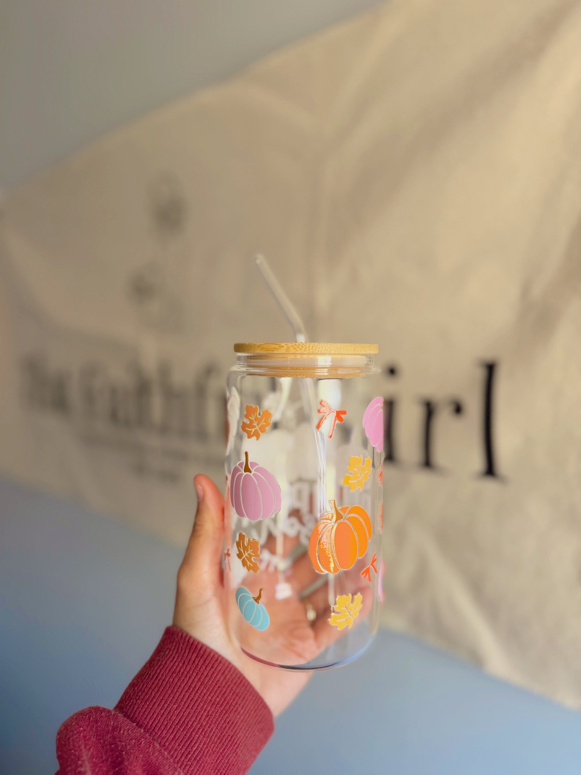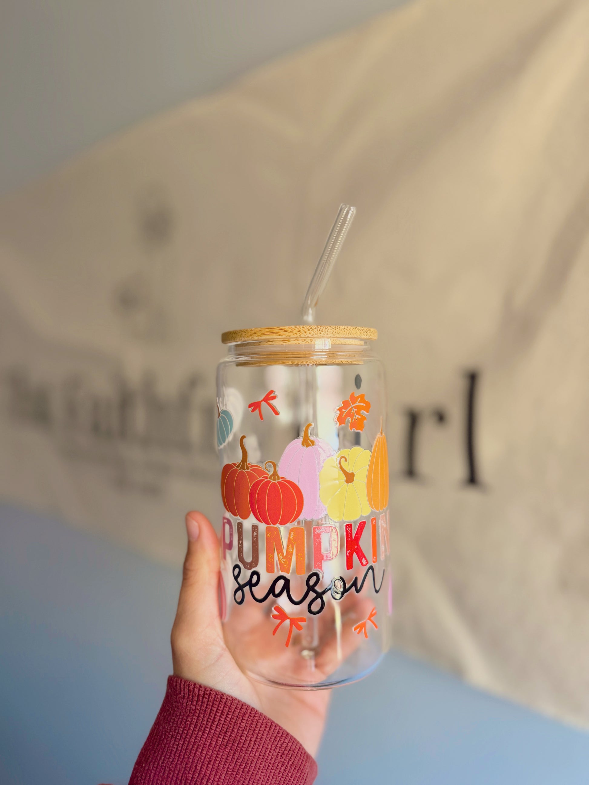 Pumpkins, ghosts, and cozy sips, our fall glass 16oz tumblrs are here for all your PSL vibes !!