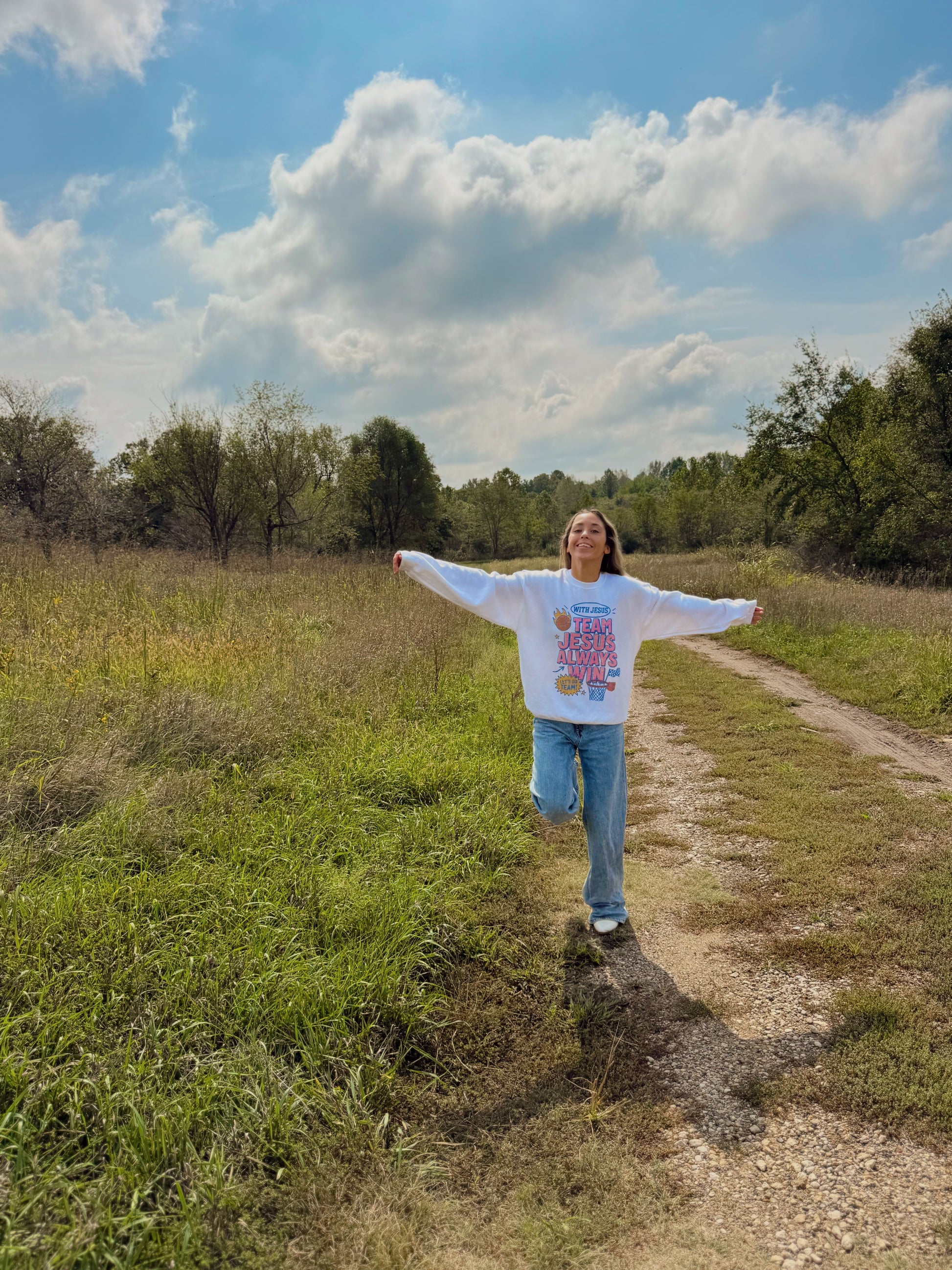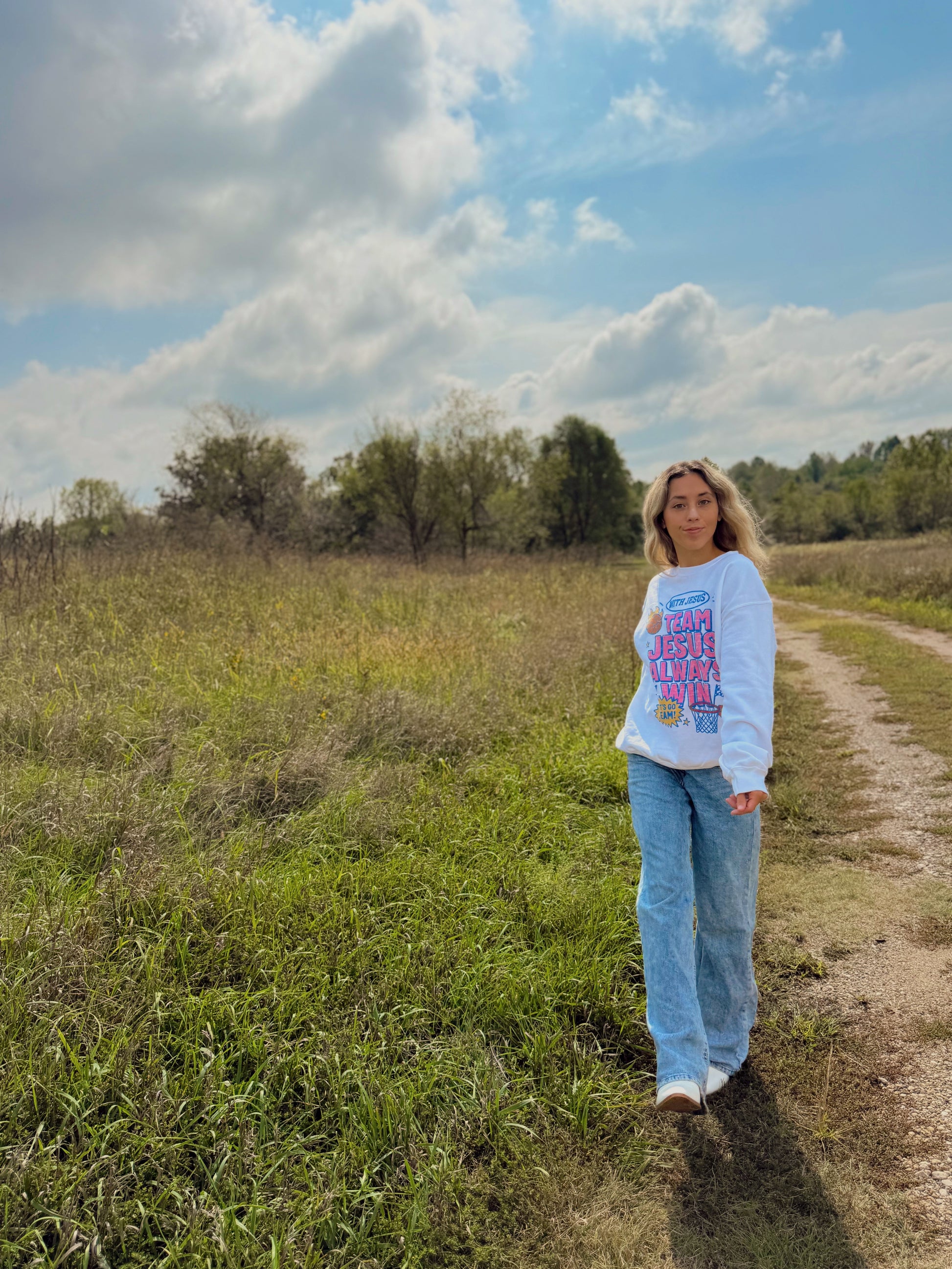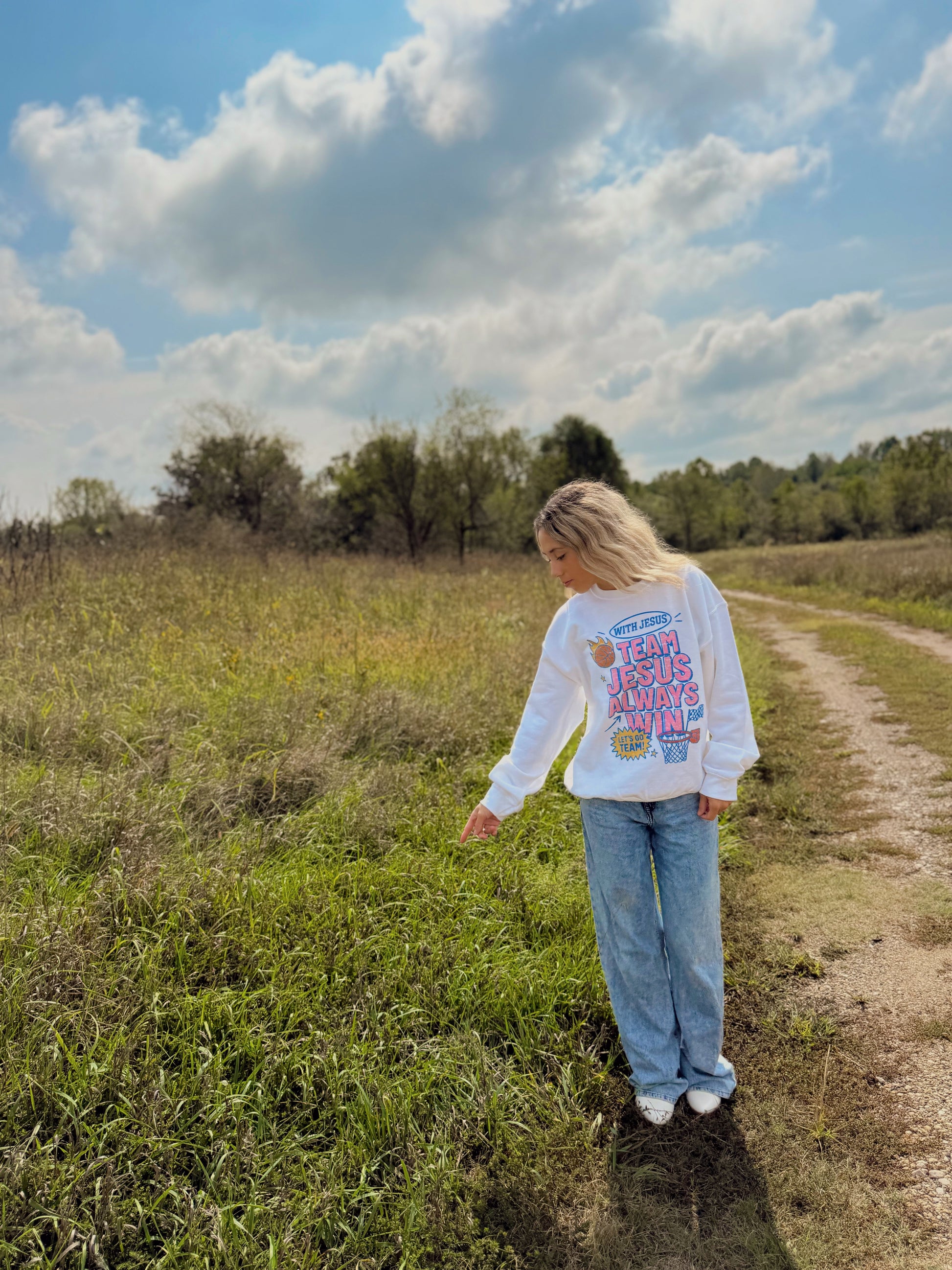Show your faith boldly in our Team Jesus Sweatshirt. With its classic crewneck fit and soft, cozy fabric, this piece is perfect for layering on crisp fall days or wearing year-round as a reminder of where your victory comes from. Designed for comfort and meaning. It pairs effortlessly with jeans, leggings, or your favorite sweats. Making it a go to for game days, coffee runs, or Sunday mornings.
